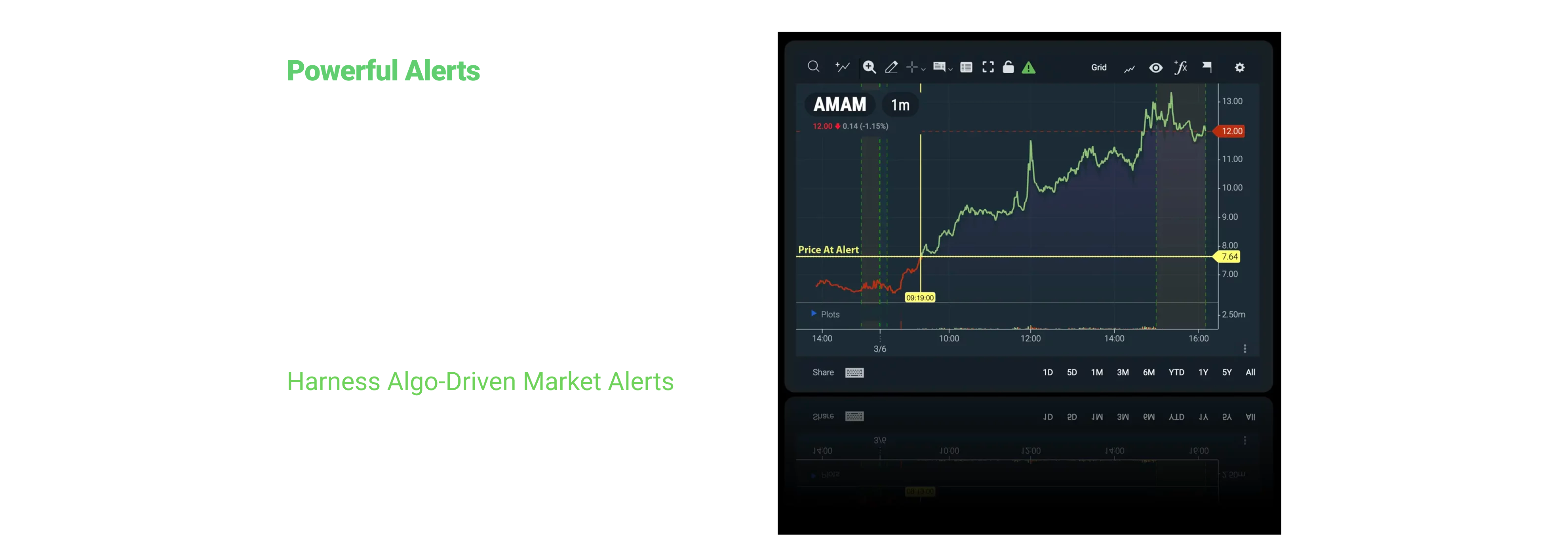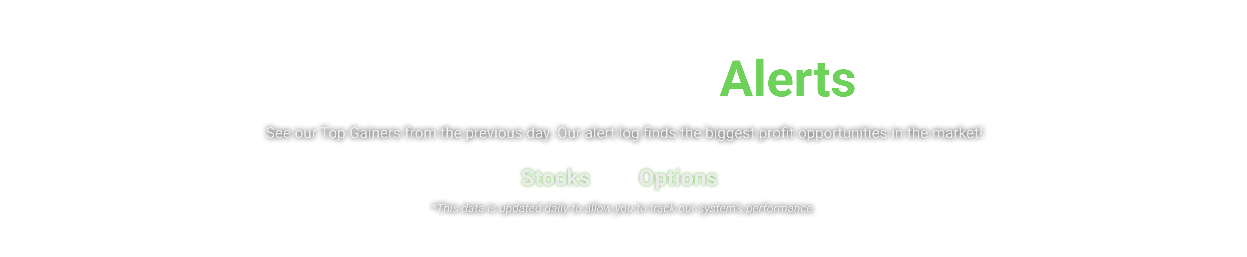 We are distinctly different than any other trading system on the market. Long before the market opens, our system scans the exchanges using proprietary algorithms to find the most active stocks. Our fully automated scanners then send you alerts to explosive opportunities in the market in real time. Once an alert is posted, you can click on the symbol and find out why that stock received an alert. Then use our advanced charting tools and proprietary volatility indicator to see which stocks are breaking out and posting the biggest gains.